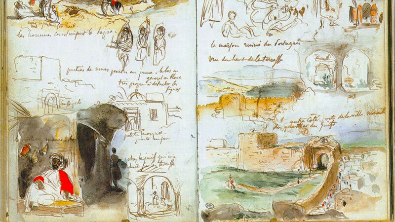 La légèreté du matériel va permettre plus de travail en extérieur et transformer le rapport au paysage : Turner, Delacroix, Zorn, Schiele, Moebius… Le grand voyage en Italie puis en Grèce et au nord de l’Afrique donne l’occasion d’études, notes d’observations, recherches de couleurs. Ces croquis et les textes qui les parcourent fabriquent les premiers carnets de voyage.