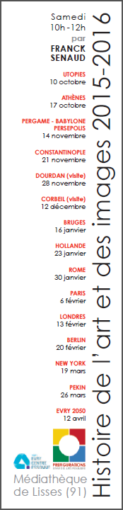 – Premier cours d’Histoire de l’Art et des Images le samedi 10 octobre 2015 à la Médiathèque Colette de Lisses : « Utopies » par Franck Senaud, artiste peintre.