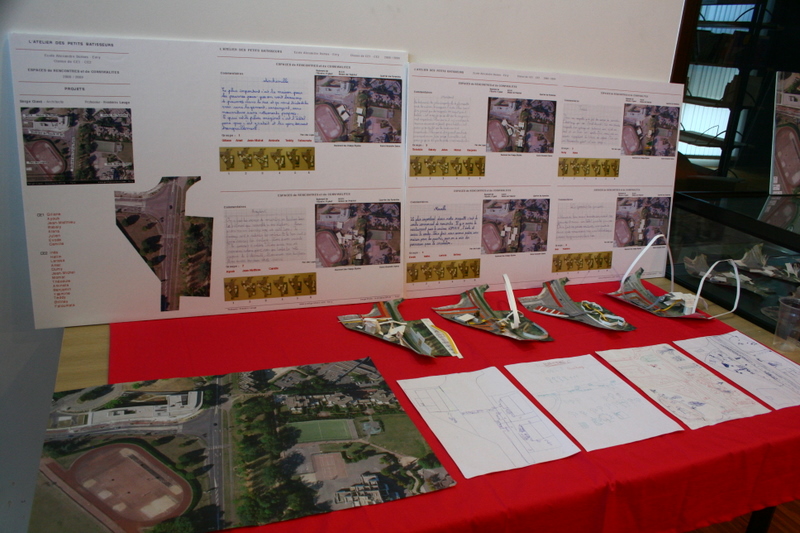 Présentation du travail sur l’année de l’atelier de découverte de l’architecture « les P’tits bâtisseurs », classe de CE1 de l’école A. Dumas aux Pyramides, Evry.