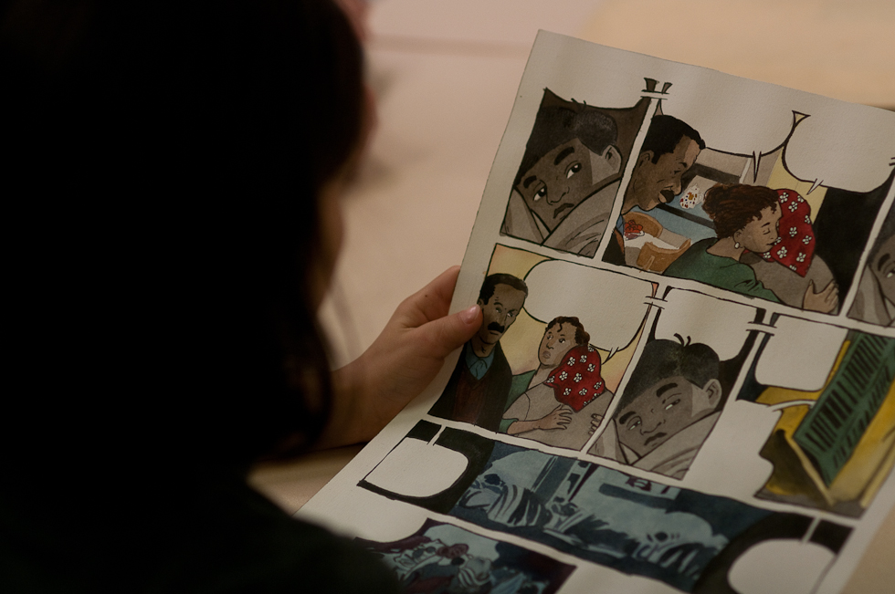 « La narration en images « pour montrer ces histoires incroyables qui nous amènent jusqu’ici. Le projet de Paroles de migrants. » Frédéric Praud utilise les parcours biographiques comme source de culture et de pédagogie, en les mettant en scène par le dessin, appréhender la migration, l’intégration, la francophonie, l’Histoire, d’une manière riche et humaine.