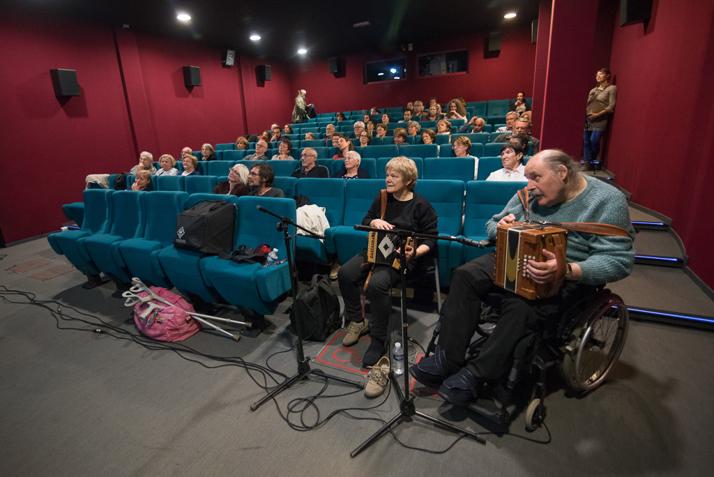 Une petite pause gustative et musicale a animé le hall chaleureux du Ciné 220 avant la projection de « Montparnasse 19 », film venant clore cette soirée riche en spectacles.