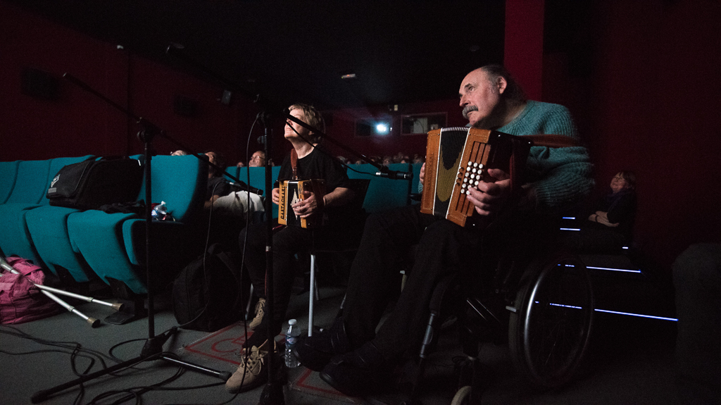 Après une conférence en salle sur la muse de Man Ray, Marc Perrone et Marie-Odile Chantran nous ont offert un Ciné-concert exceptionnel sur les magnifiques images expérimentales de Deslaw et Man Ray.