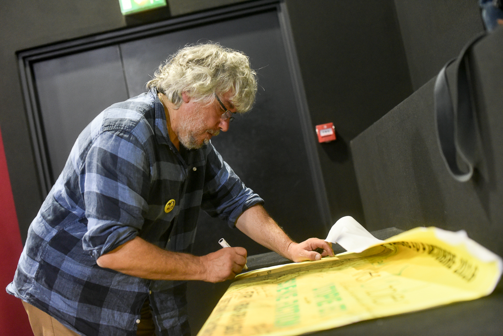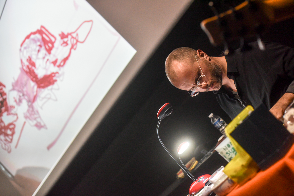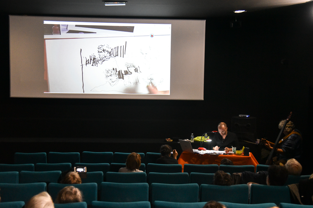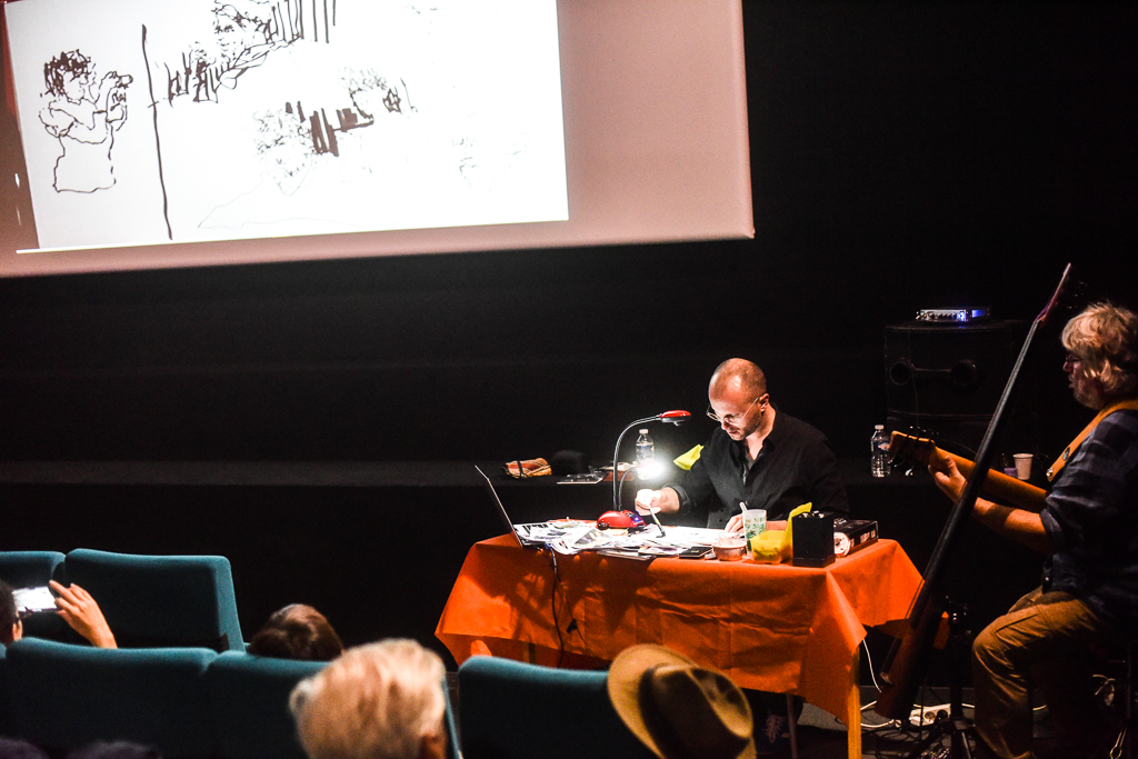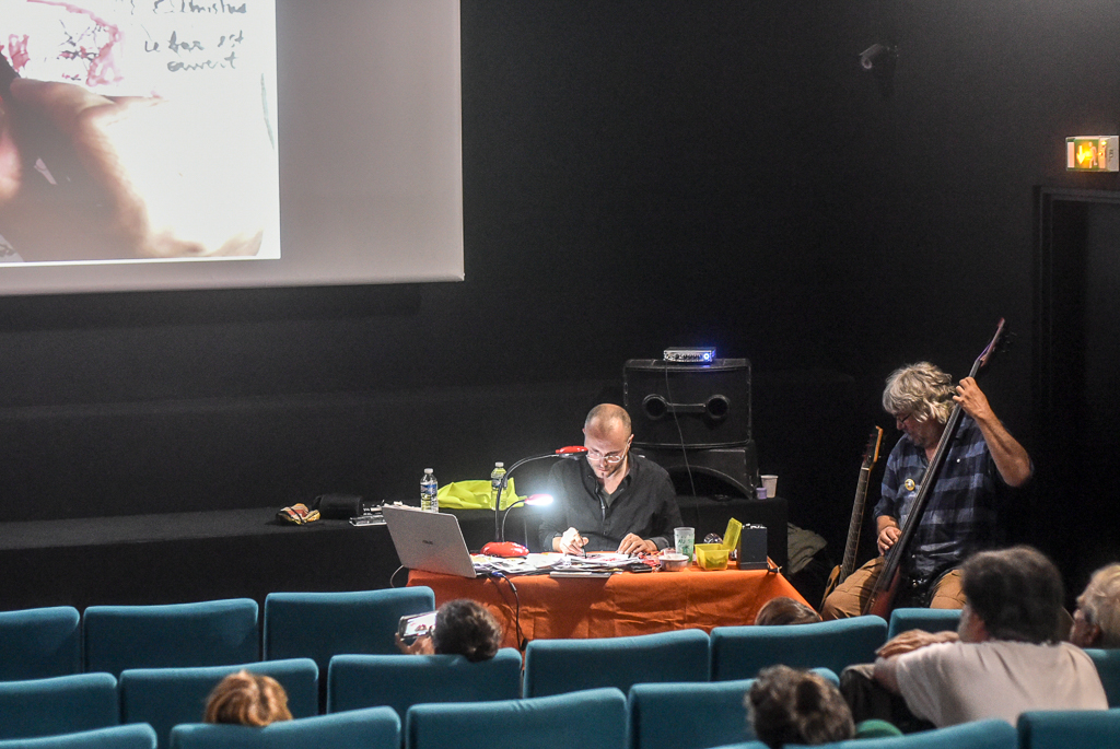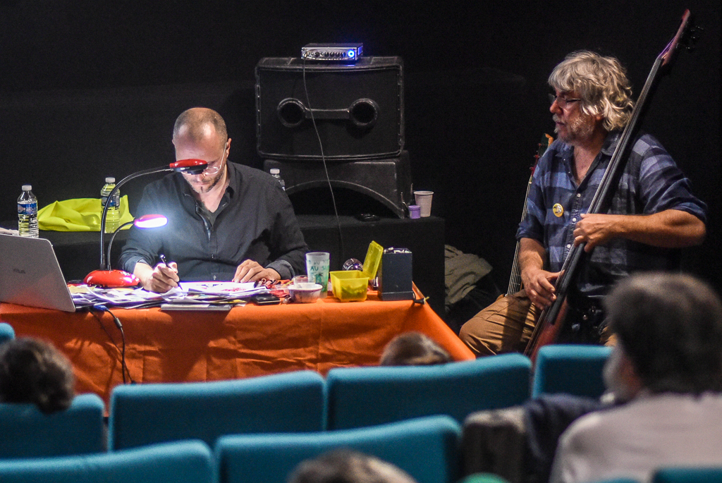 Hommage au festival de Boissy-le-Cutté à travers le documentaire d’Olivier Martin et la performance inédite de Franck Senaud et Philippe Laccarrière. Le peintre Senaud a dressé le portrait des bénévoles à l’aide de ses crayons, guidé par la musique de Laccarrière.