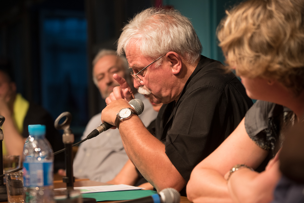 La soirée s’est poursuivie avec un Café-Ville exceptionnel réunissant les quatre directeurs du lieu, accompagnés du conteur Abbie Patrix venu raconter son expérience singulière au cœur de la ville et au contact des habitants.