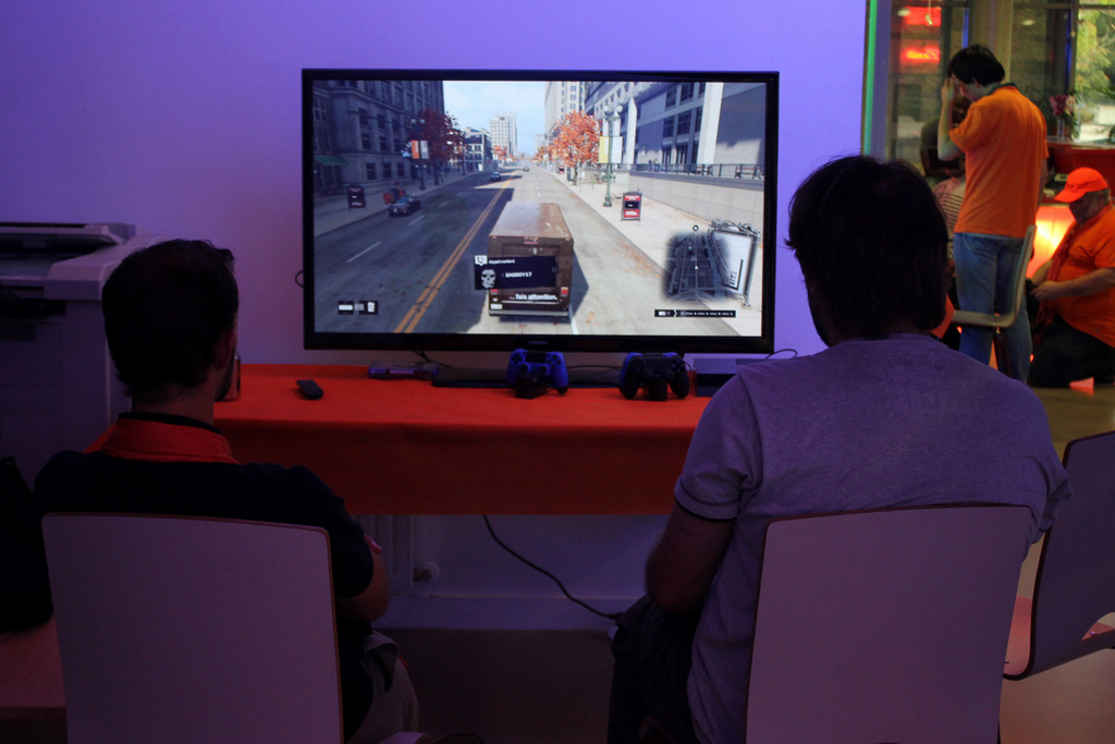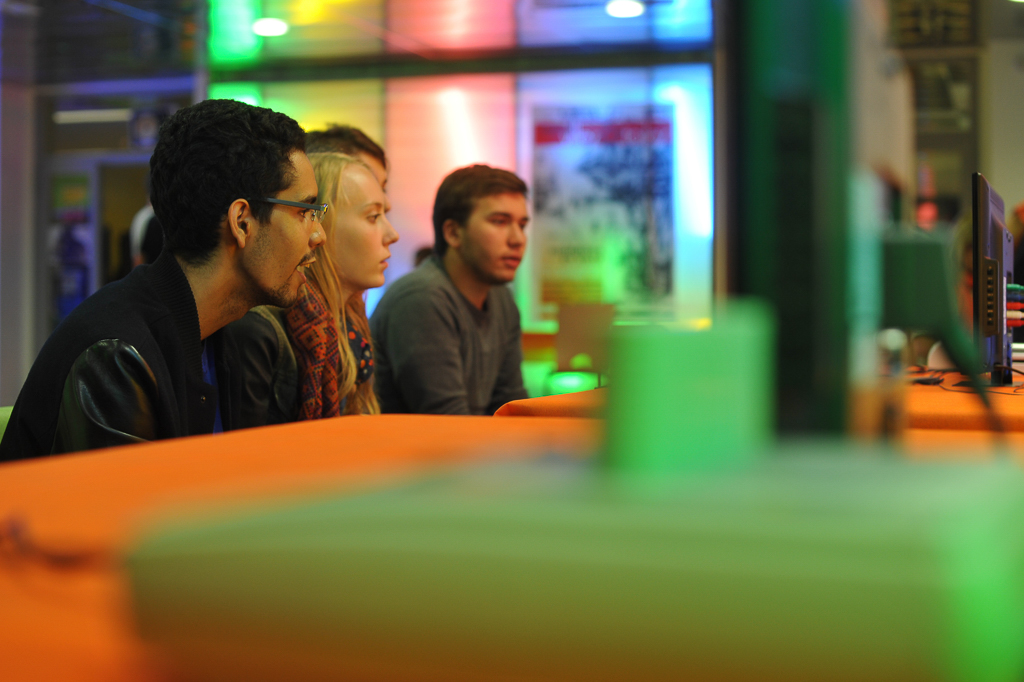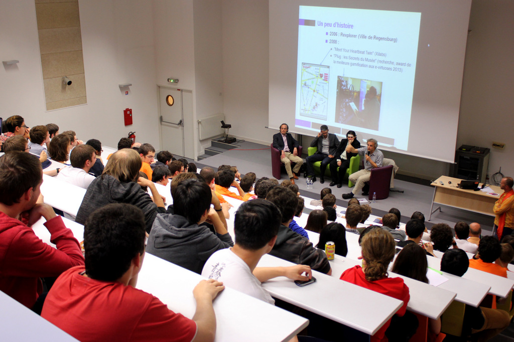 On commence cette série de diaporamas par la « Nuit du jeu-vidéo », qui s’est tenue dans les magnifiques locaux de l’ENSIIE à Evry : quand le jeu-vidéo se mêle à l’orange !