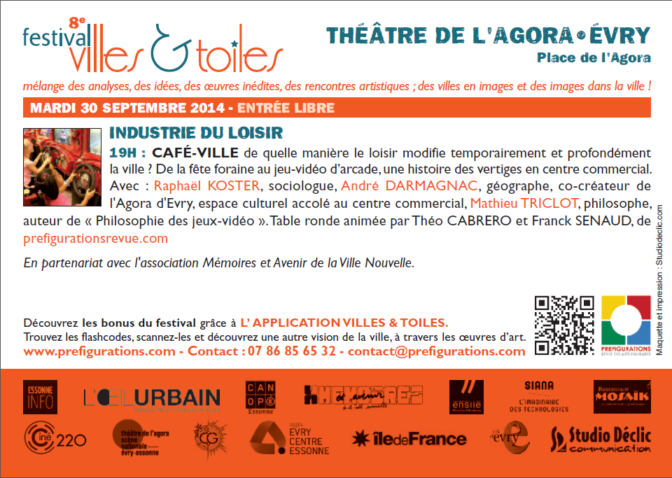 19h : Table-ronde animée par Théo CABRERO et Franck SENAUD, rédacteurs du webzine prefigurationsrevue.com à propos dont le loisir modifie temporairement et profondément la ville.