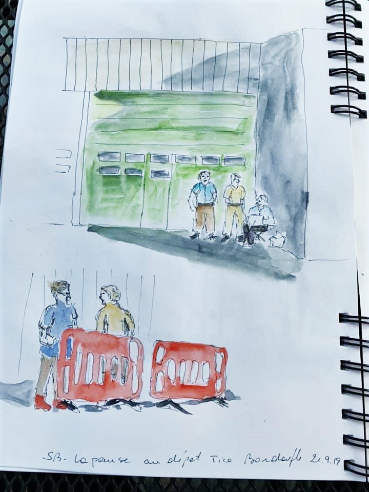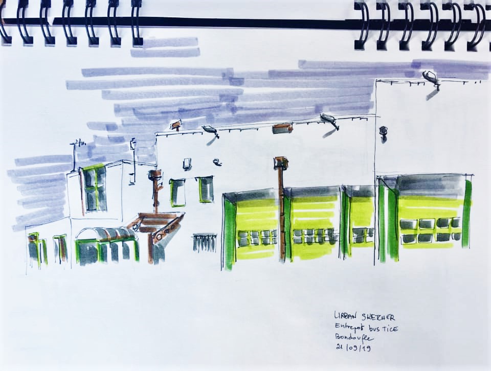 L’entreprise TICE a ouvert son entrepôt aux dessinateurs de Urban sketchers Evry Essonne. Des décors insolites, avec de belles perspectives, et des intérieurs colorés qui ont enchanté nos artistes.