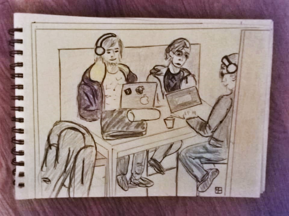 C-19 · Évry. Nous étions un petit groupe de 5 à croquer les développeurs de Jeux-Vidéos qui étaient bien concentrés devant leurs écrans…. 3 jours devant des écrans pour une performance au C19 à Evry. L’ambiance était très studieuse, nous nous sommes essayés à saisir quelques participants en espérant qu’ils se reconnaîtront!