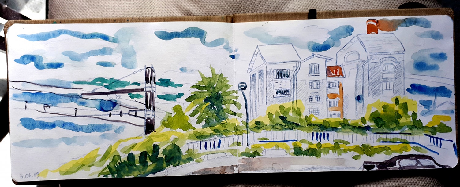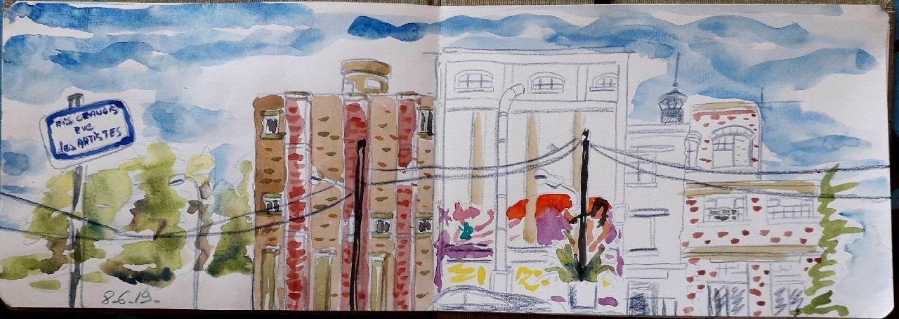 Après midi sous le signe de la pluie ( légère), le soleil ( de saison ) , et surtout de la bonne ambiance ( échange de connaissances) À bientôt les Urban Sketchers !