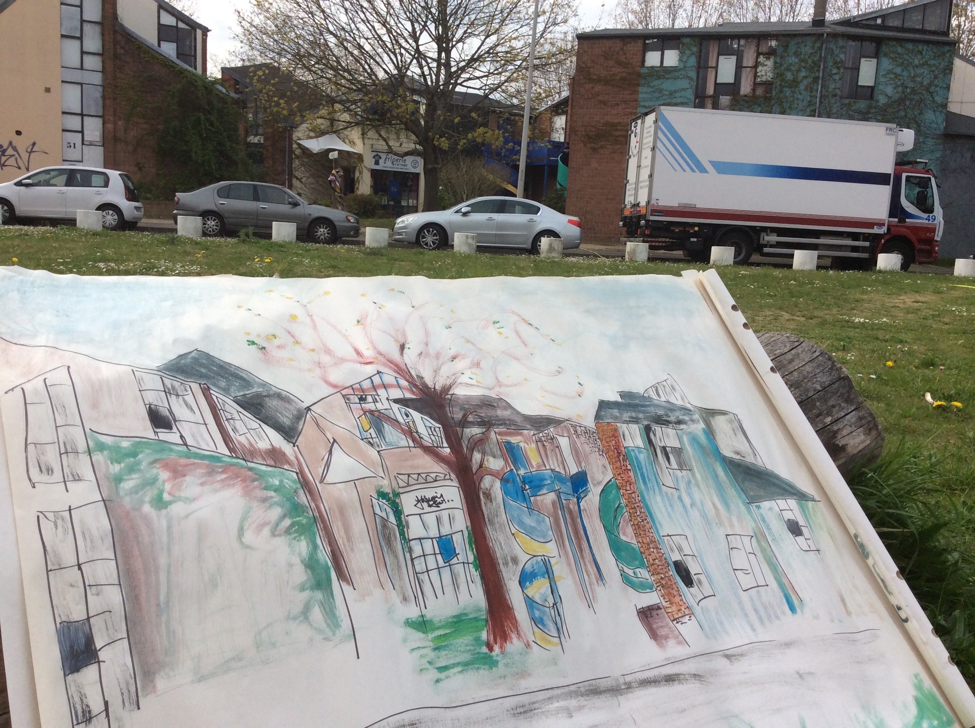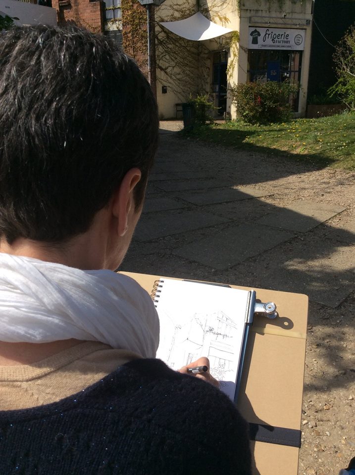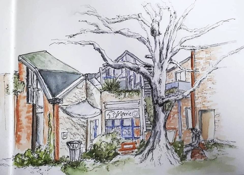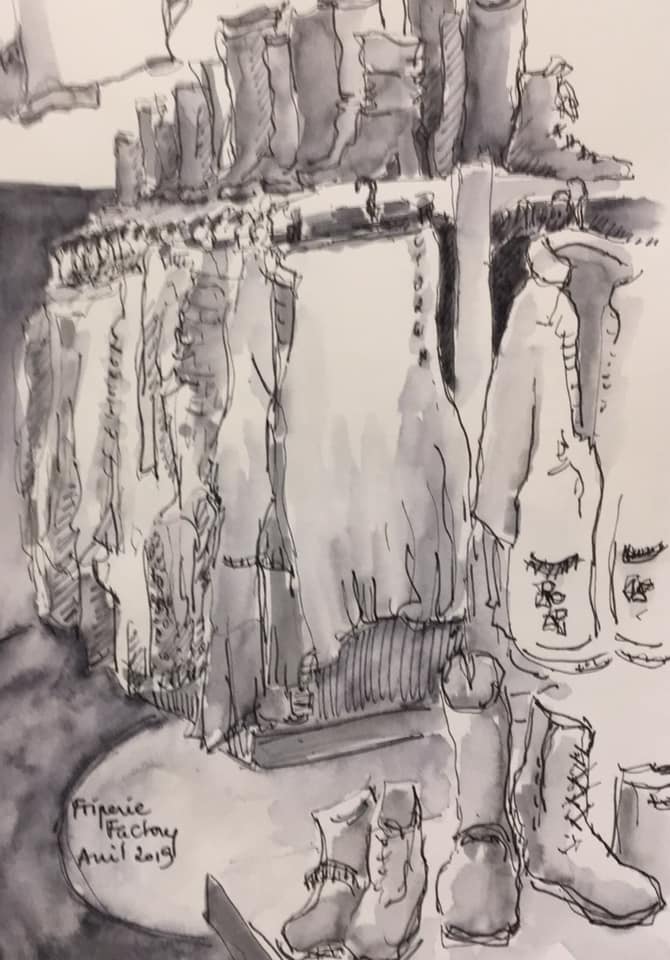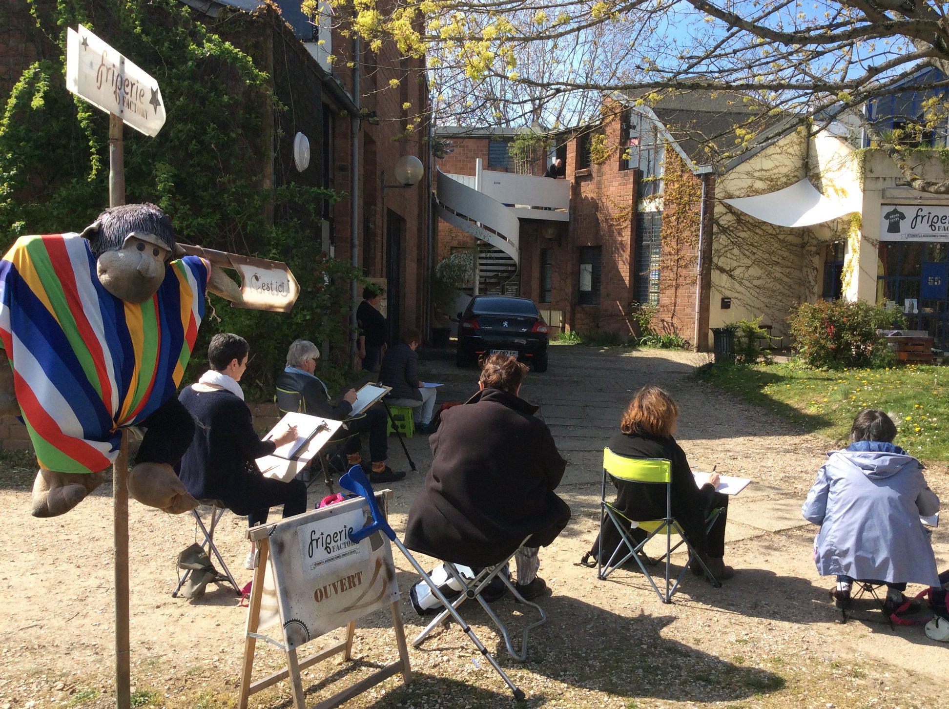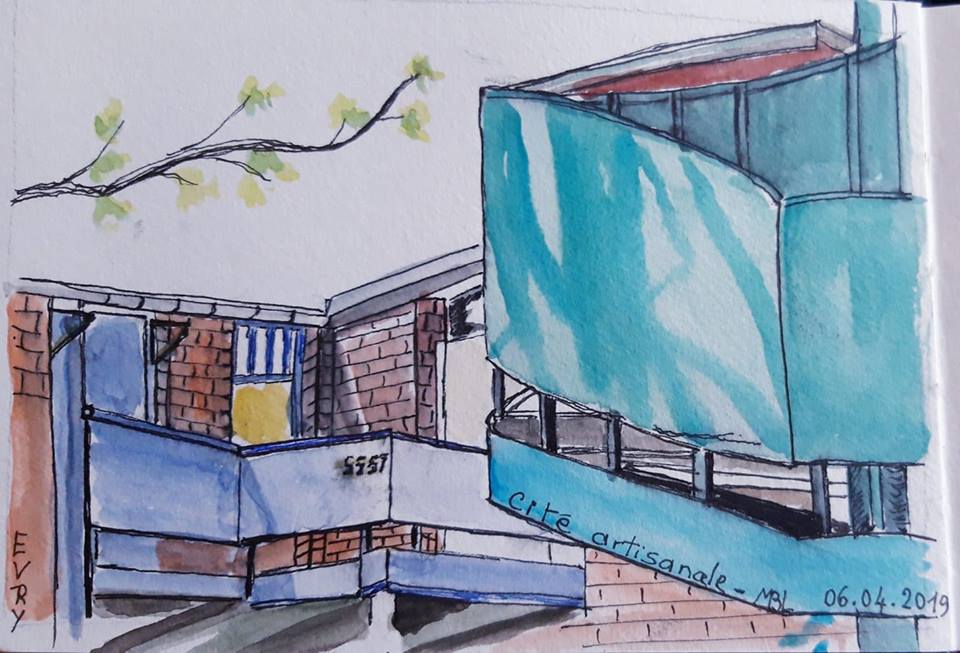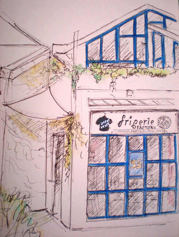 Nous nous sommes retrouvés une bonne dizaine et par un beau soleil pour dessiner à la cité artisanale, dont la friperie Factory, construite en 1978 et bientôt classée.
