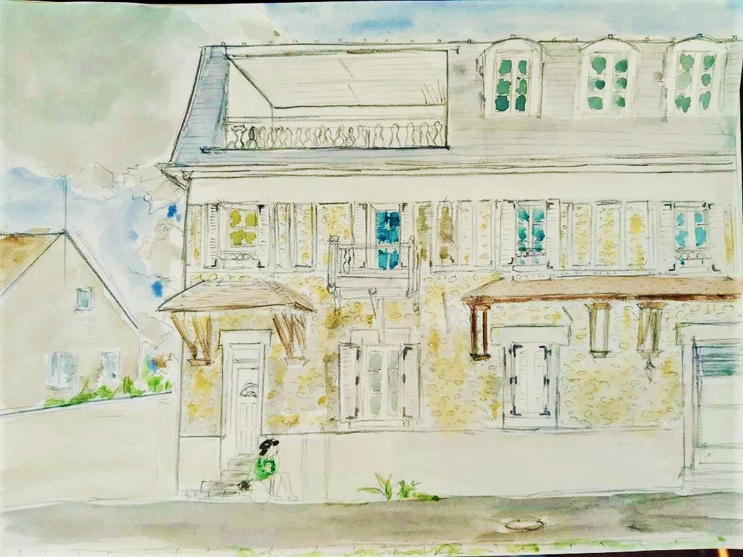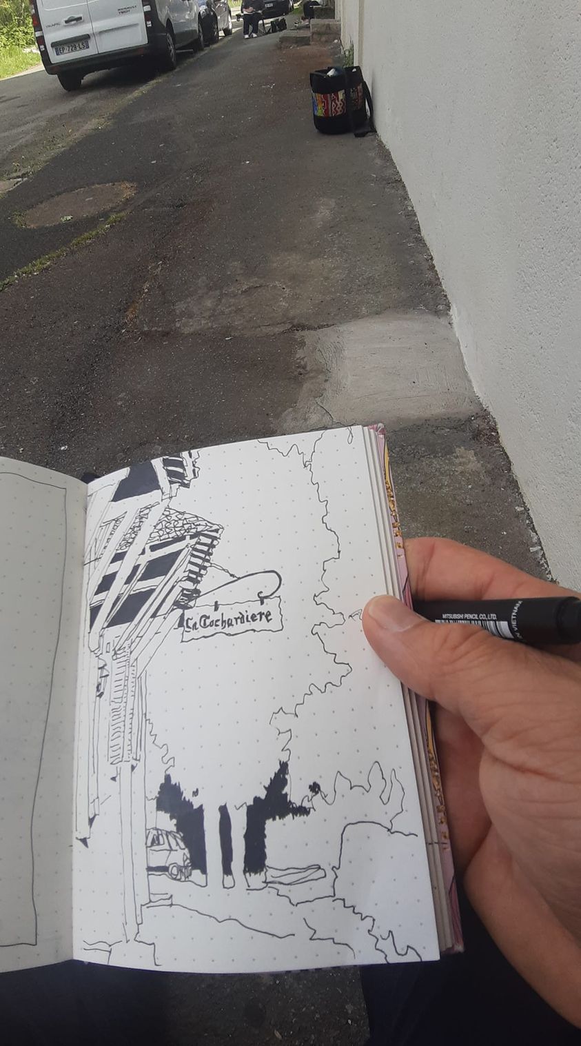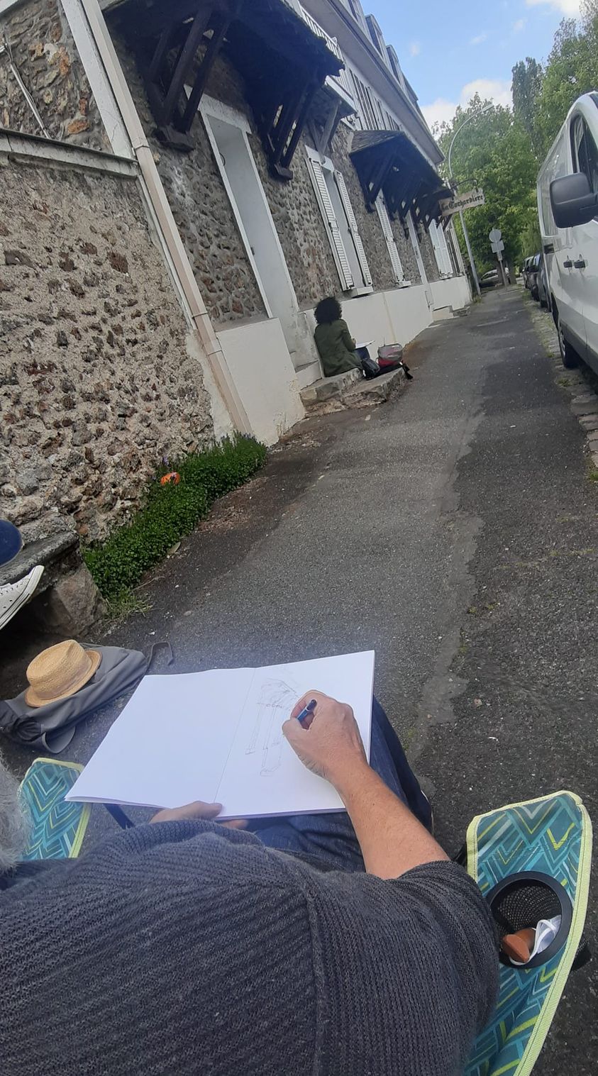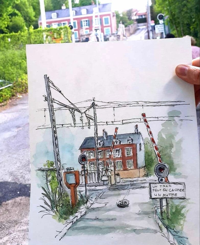 On franchit la voie ferrée à la gare de Grand Bourg, on tourne à gauche et on se gare. Rv masqués, on passe devant la statue de l’ile de Paques et on se retrouve devant l’ancienne auberge (prévoir de quoi s’asseoir)
